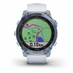Montre GPS Garmin Fenix 6 Pro Solar Titane Bleue Cobalt Bracelet Blanc.